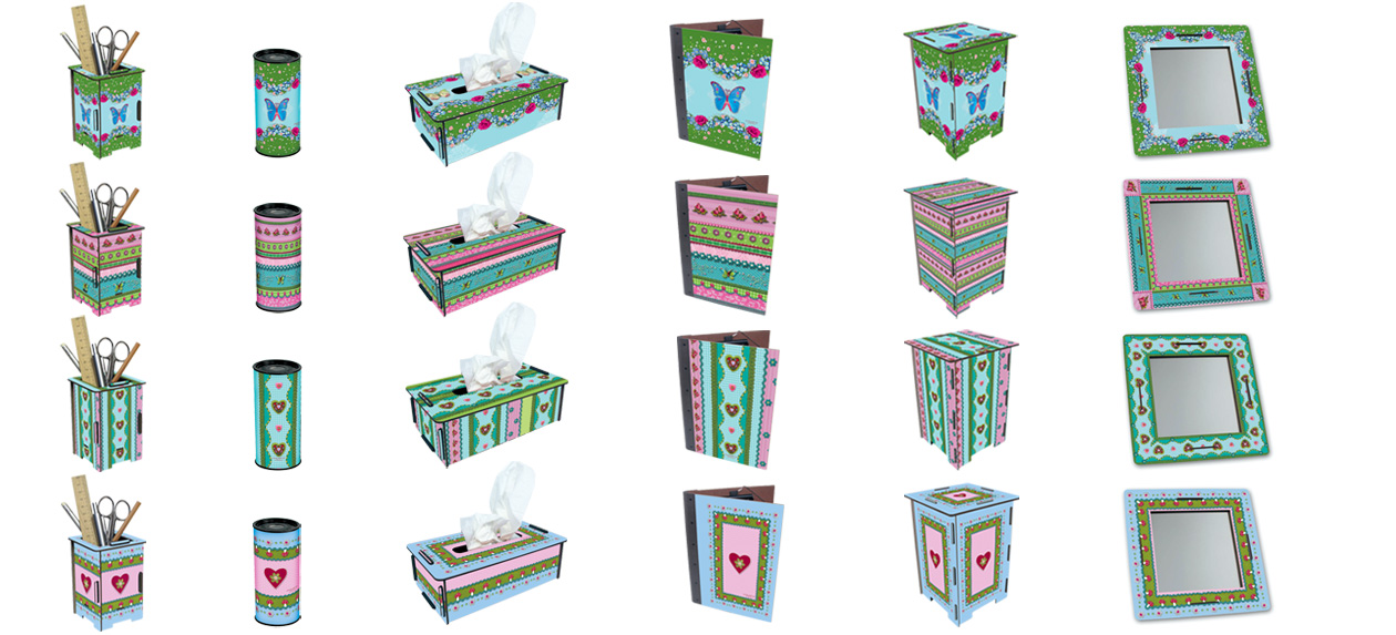 Hocker, Spiegel, Lampen, Kaleidoskope, Ordner, Stifteboxen ...